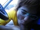 Seine Freundin bringt ihn im Auto zum spritzen – Blowjob im Auto